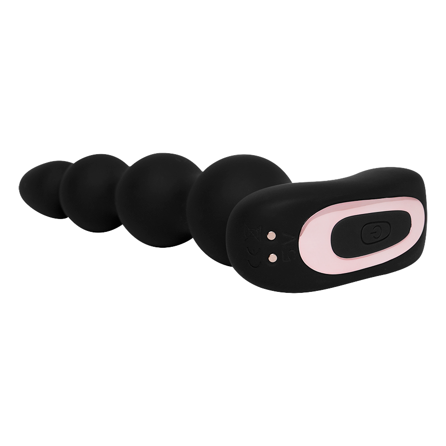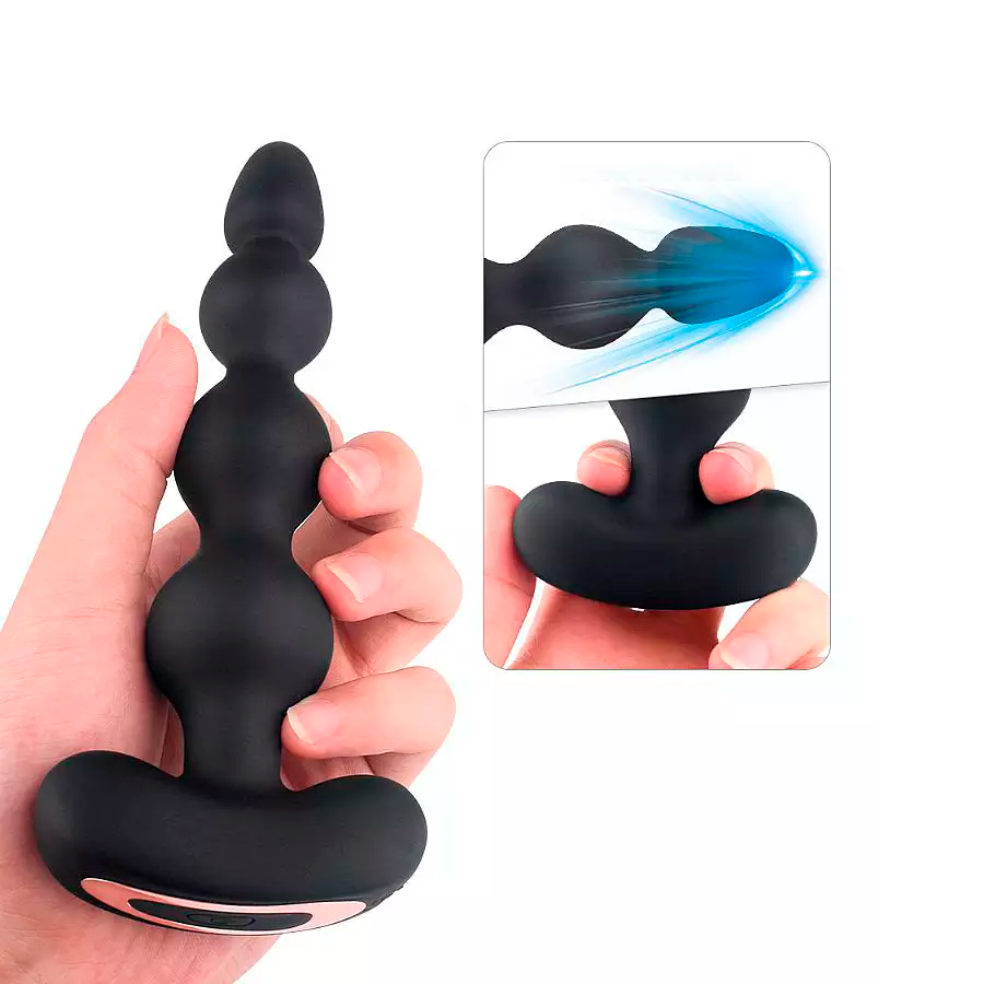 Vibrador de estimulación anal con pequeños nódulos que aumentan de forma graduable para hacer la penetración más placentera. Cuenta con 9 modos de vibración, además se puede disfrutar por medio del control remoto, con un alcance de 5 a 10 metros de distancia. Carga magnética vía cable USB.
