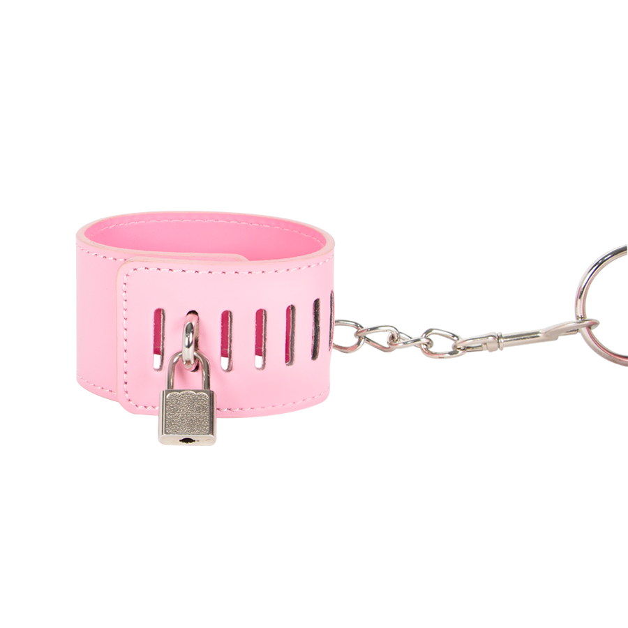 Esposas de cuero sintético para los pies con candado, para practicar juegos fetichistas o de dominación.
