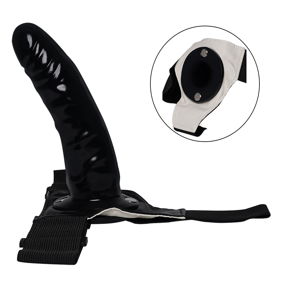 Arnés con consolador y correas elásticas totalmente ajustables. Posee vibraciones de varias velocidades, y se adapta a cinturas de hasta 48,5 pulgadas.