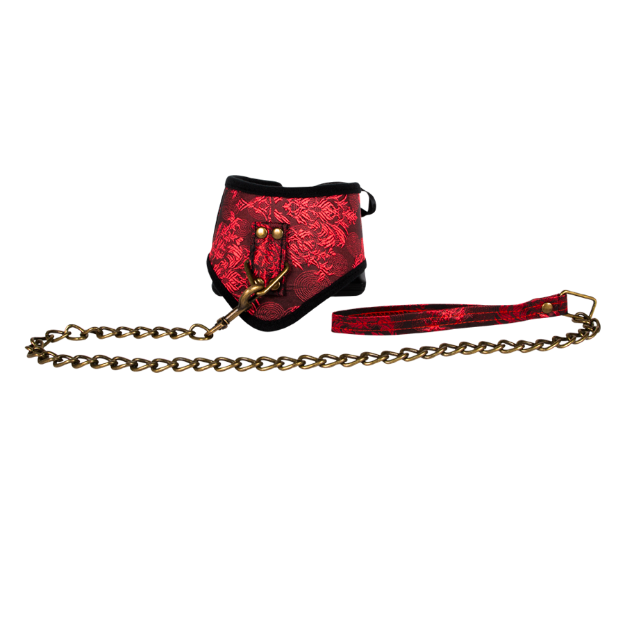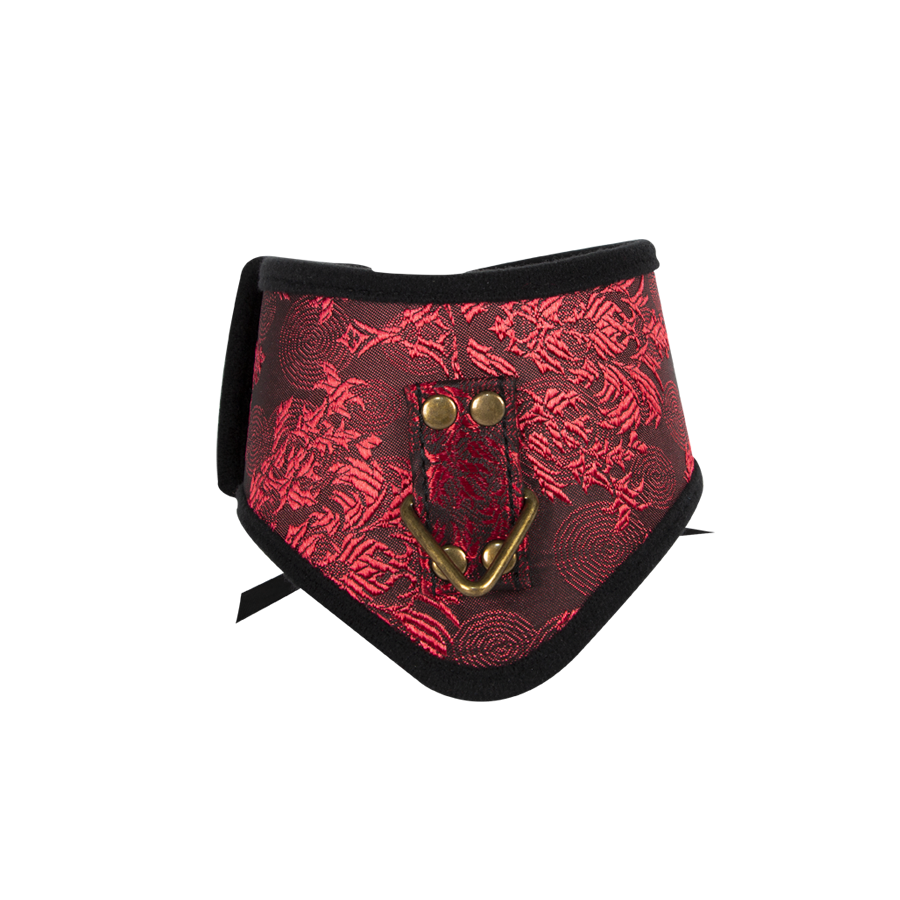 Collar de perro en forma de gargantilla con grabado rojo y cadena color cobre para un toque más rudo. Perfecto para juegos fetish.