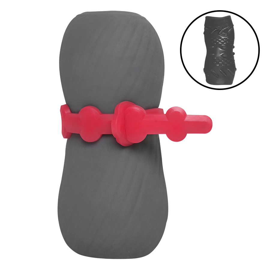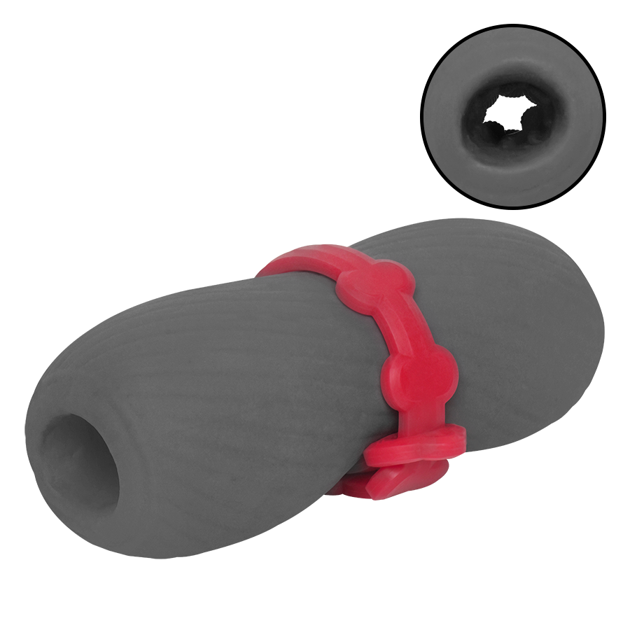 Masturbador masculino con una pequeña correa ajustable para que gradúes la presión que deseas tener.