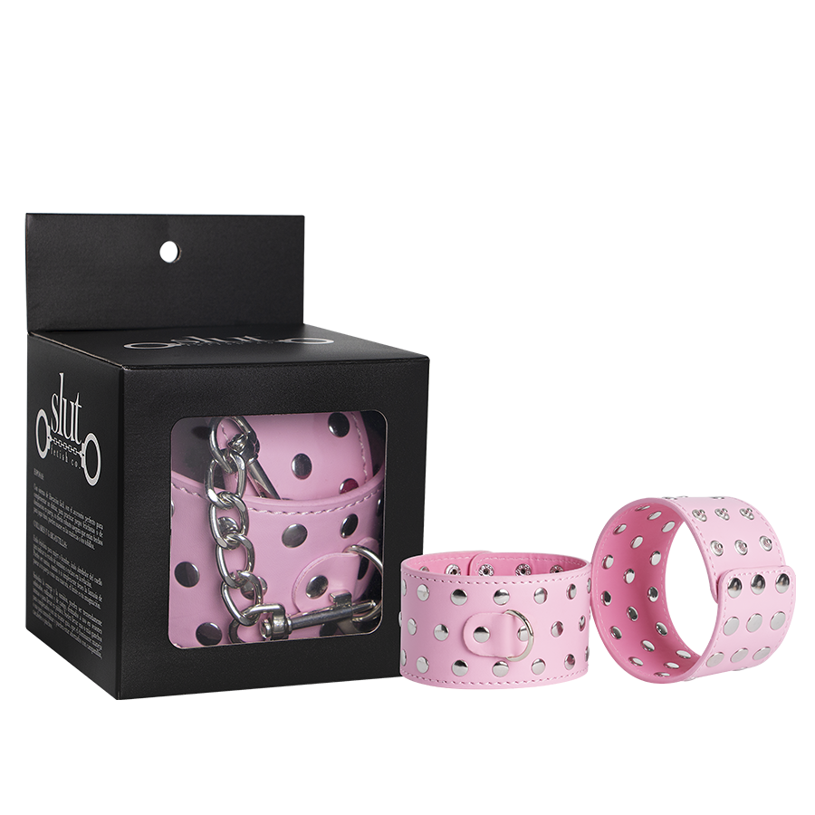 Juego de esposas para tobillos, incluyen taches a su alrededor.