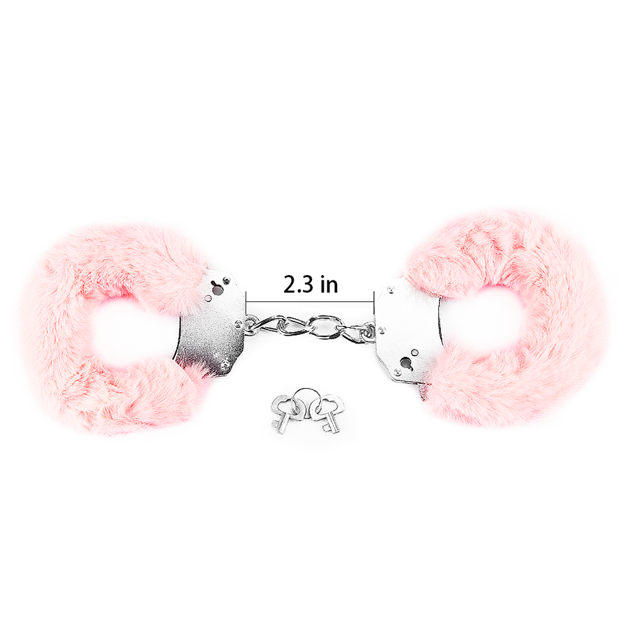 Esposas para juegos de dominación sexual, con cadena larga que permite mover un poco las manos. Esposas con botón de liberado rápido, no necesita llaves para abrir. Incluye llaves.