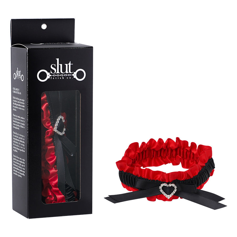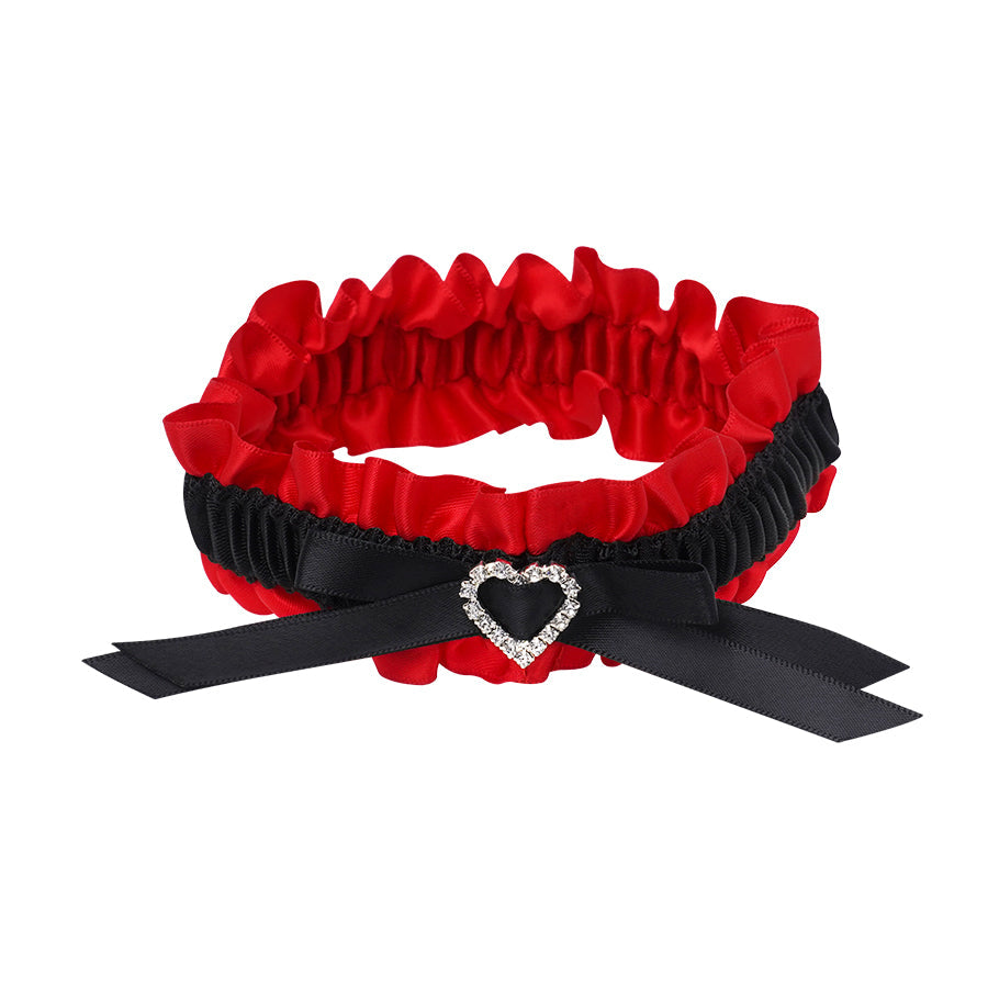 Gargantilla en cintas con elástico para adecuarse a tu cuello y un pequeño detalle en forma de corazón.