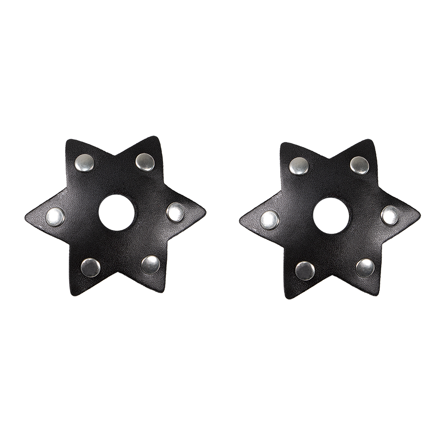Pezoneras con forma de estrella con pequeños taches en las puntas.