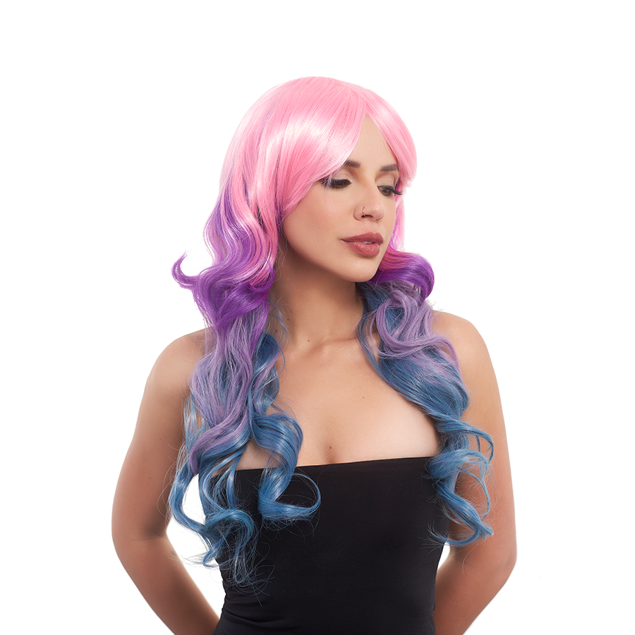Peluca Nicol Ondulada Rosa/Violeta/Azul