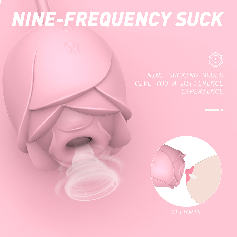 Espectacular juguete para la estimulación clitorial y zonas erógenas. Disfruta al máximo tus encuentros íntimos con este vibrador en forma de rosa, gracias a sus modos de succión y podrás vibrar vivir momentos únicos y placenteros.