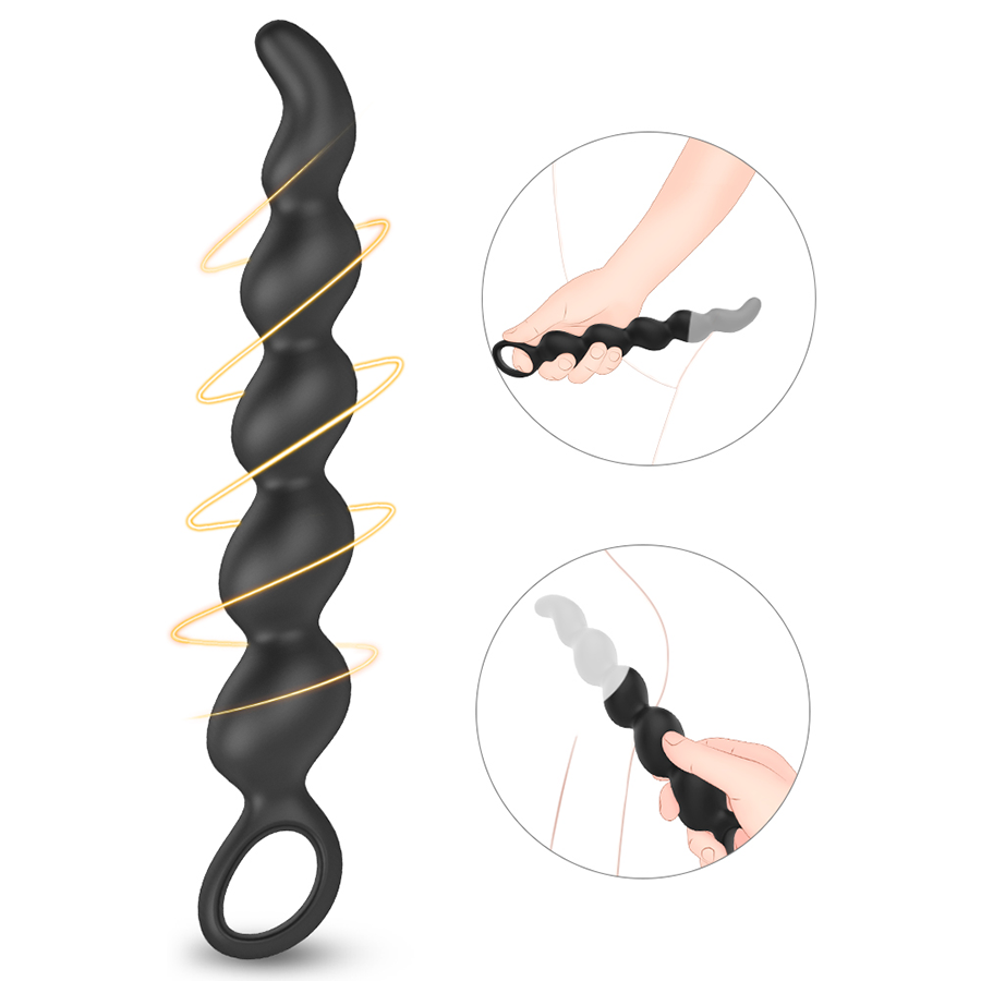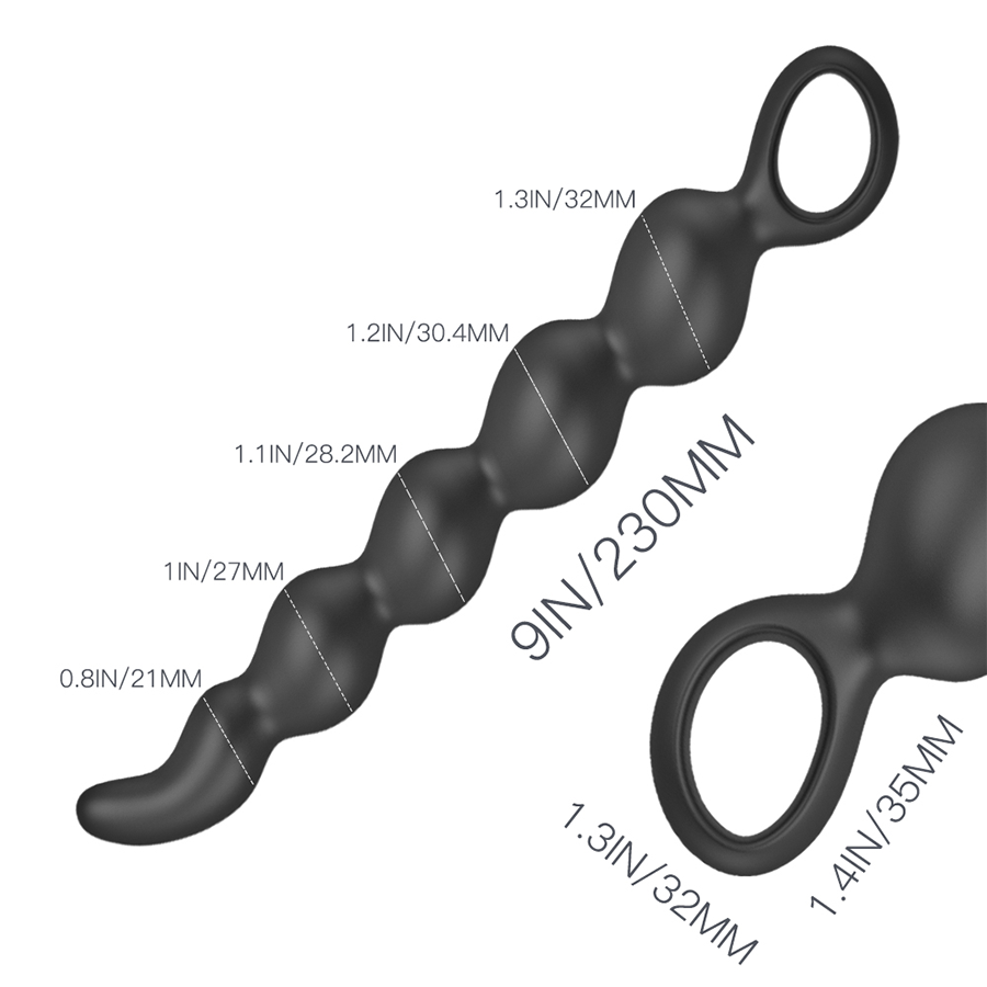 Estimulador prostático con 5 nódulos que aumentan de tamaño de forma gradual, cuenta con un anillo para un agarre y extracción fácil. Fabricado en silicona suave, flexible y segura para el cuerpo.